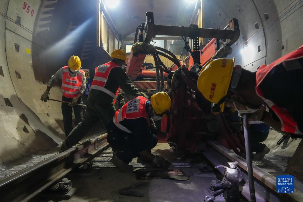 4月11日,施工人員在廣州地鐵11號線(xiàn)南石路站進(jìn)行長(cháng)軌焊接作業(yè)。