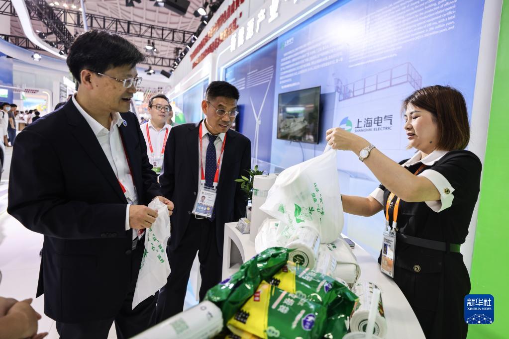 4月11日,觀(guān)眾在消博會(huì )上參觀(guān)可降解塑料制品。