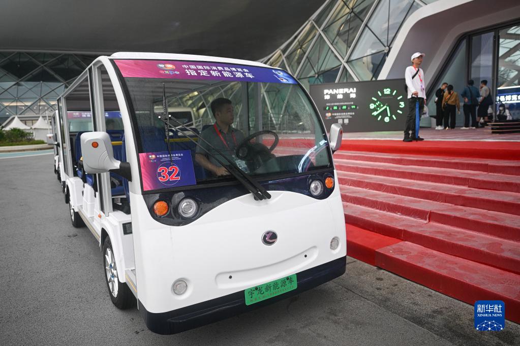 在消博會(huì )場(chǎng)館外拍攝的新能源擺渡車(chē)(4月8日攝)。
