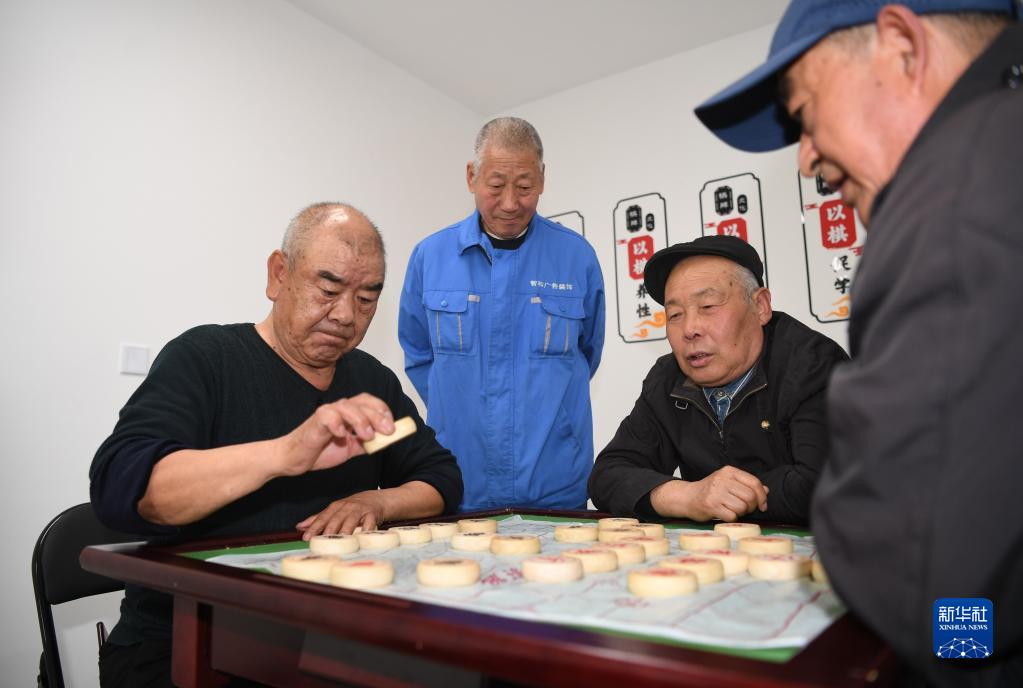 老年人在河北雄安新區容西第一養老驛站下象棋(4月10日攝)。