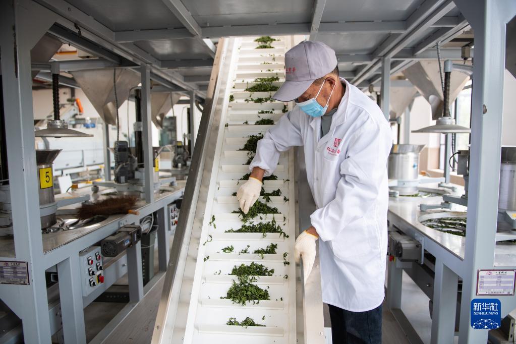 4月11日,在長(cháng)沙望城烏山貢茶基地,工人抽查茶葉品質(zhì)。