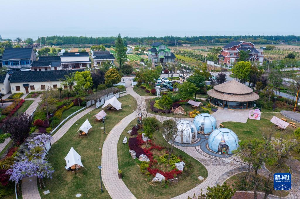 4月11日拍攝的伍浦村漁耕文化園的陶灣里鄉村咖啡店以及鄉村露營(yíng)地(無(wú)人機照片)。