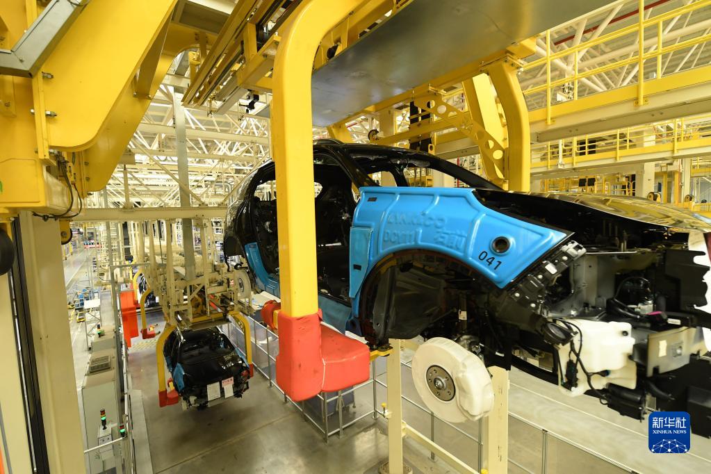4月11日,在領(lǐng)克汽車(chē)寧波余姚工廠(chǎng)總裝車(chē)間,全自動(dòng)生產(chǎn)線(xiàn)將新能源車(chē)運送到下一個(gè)環(huán)節。