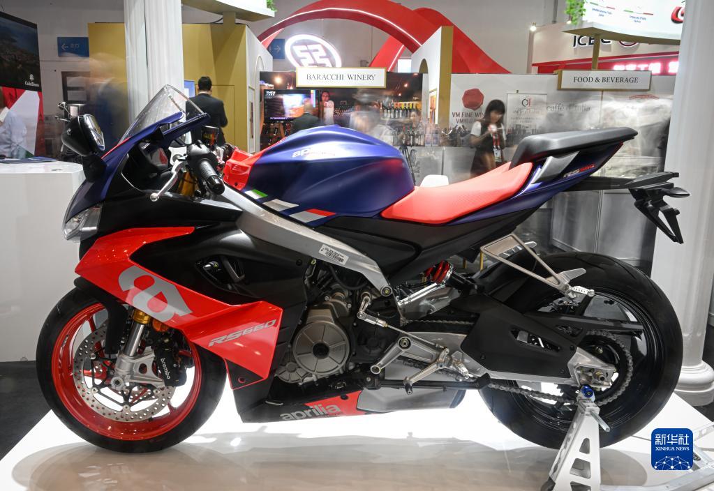 4月11日在消博會(huì )意大利企業(yè)館內拍攝的摩托車(chē)。