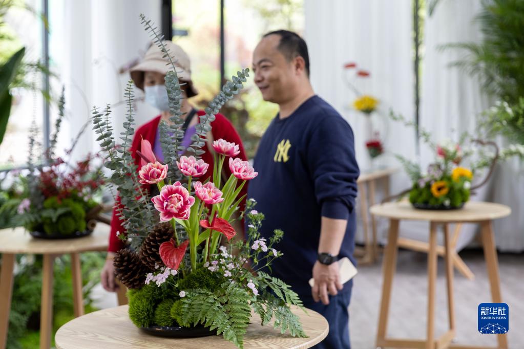 4月11日,市民在閘北公園市民園藝中心(林長(cháng)驛站)參觀(guān)。