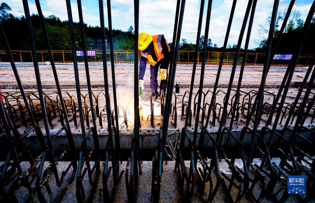 在梁開(kāi)高速梁平段施工現場(chǎng),工人在進(jìn)行焊接作業(yè)(2023年3月20日攝)。