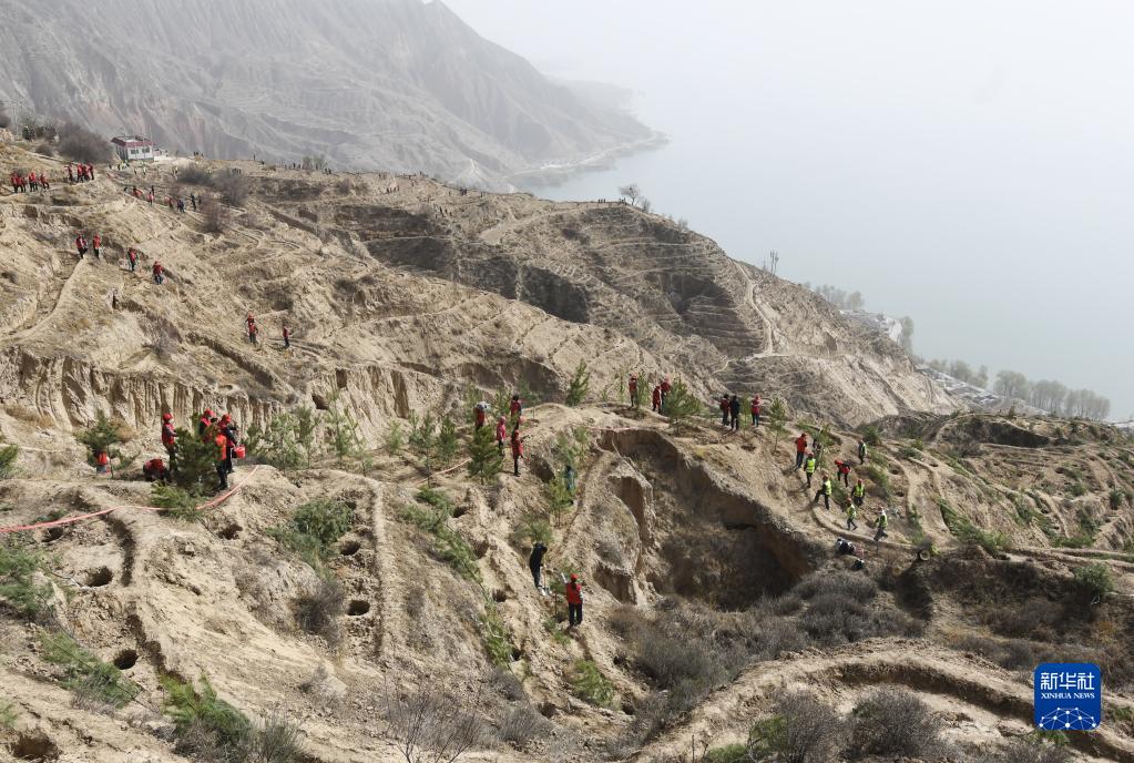 當日,地處黃河中上游的甘肅省永靖縣搶抓春季造林時(shí)節,組織當地干部職工在黃河劉家峽水庫周邊荒山荒坡上義務(wù)植樹(shù),用實(shí)際行動(dòng)為母親河增添新綠。