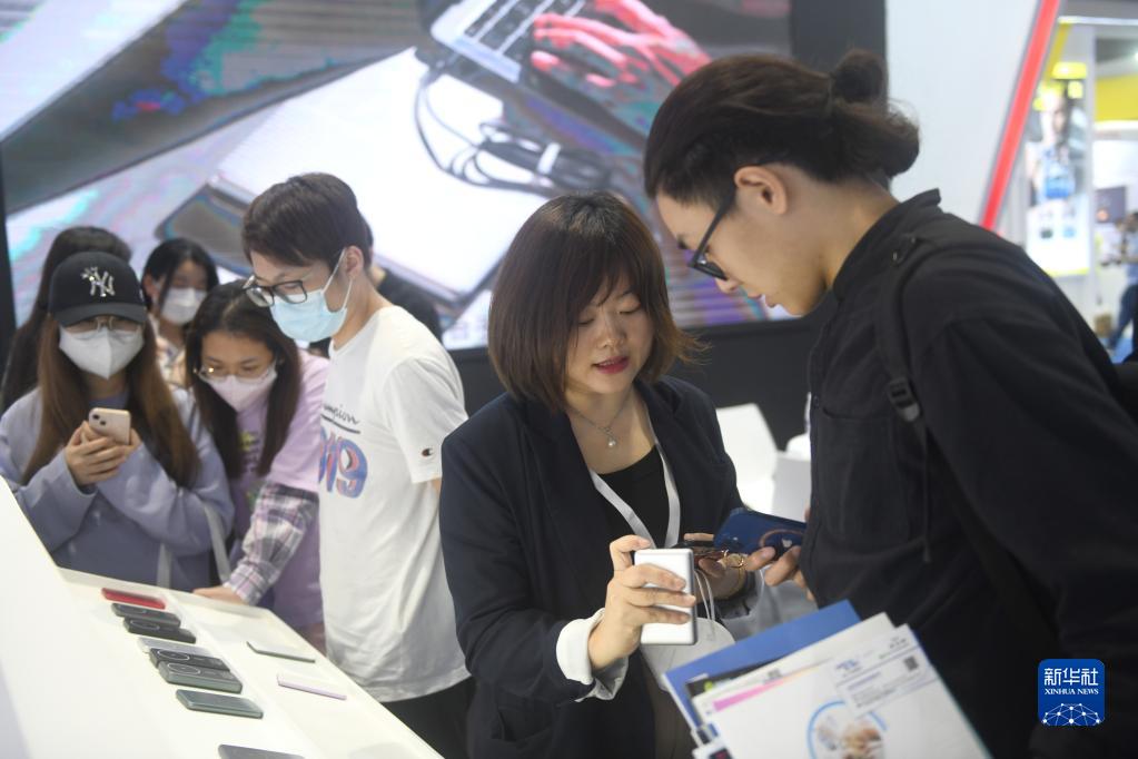 4月12日,參觀(guān)者在展會(huì )上參觀(guān)選購無(wú)線(xiàn)充電寶。