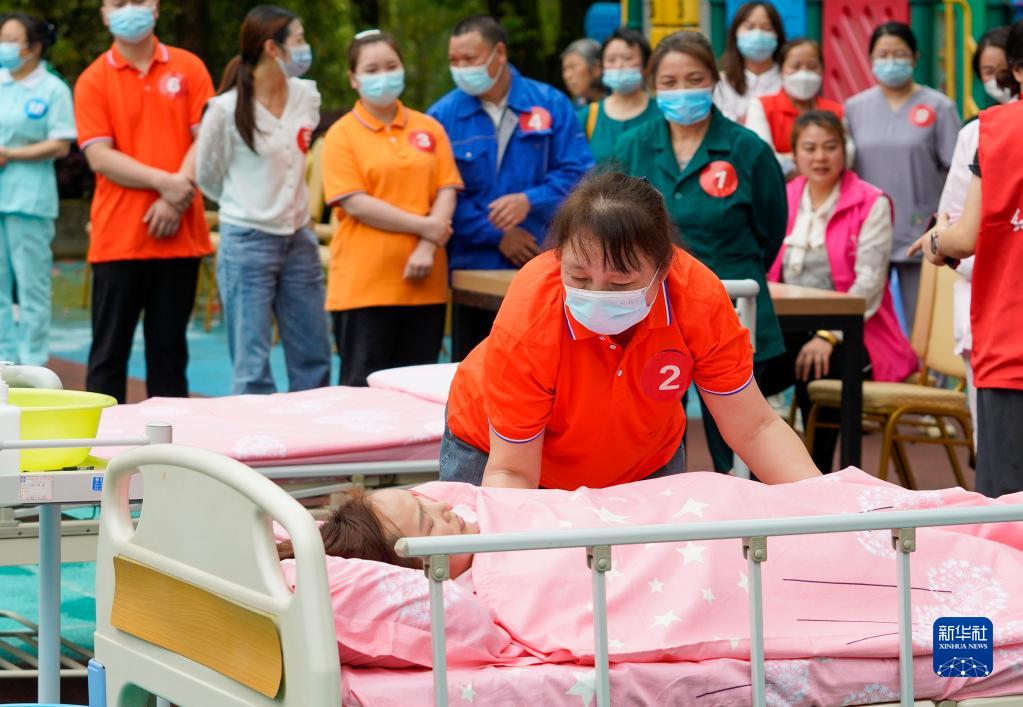 當日,重慶市沙坪壩區“紅巖·銀齡”養老護理員大賽暨“助餐、助浴、助潔”服務(wù)技能大賽決賽正式開(kāi)賽,來(lái)自當地數十家養老機構和企業(yè)的80多名養老護理員就養老日常護理、養老保潔、助力老年人沐浴等多個(gè)養老服務(wù)行業(yè)的技能項目展開(kāi)角逐。