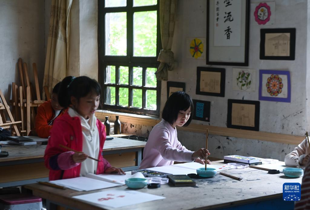 4月12日,諸暨市東白湖鎮斯民小學(xué)的學(xué)生在上國畫(huà)課。