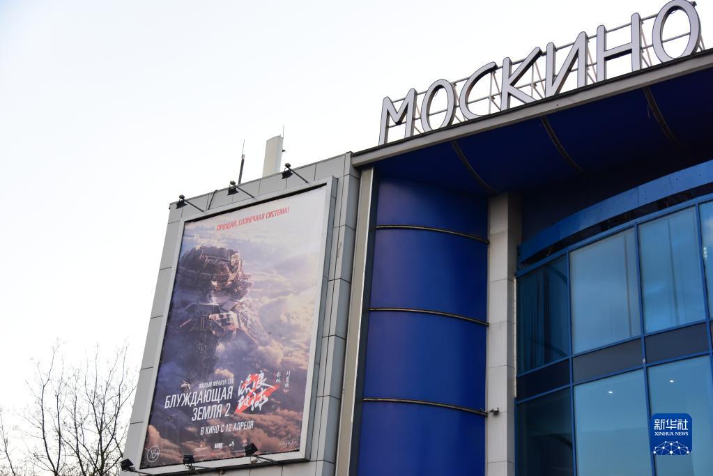 這是4月11日在俄羅斯首都莫斯科“莫斯科電影”旗下的宇宙電影院外拍攝的《流浪地球2》電影宣傳海報。中國科幻電影《流浪地球2》俄文版首映式11日晚在俄羅斯連鎖影院“莫斯科電影”旗下的宇宙電影院舉行。俄政府官員、文化藝術(shù)界人士以及在俄中國留學(xué)生、華僑華人等參加首映式。新華社記者 華迪 攝