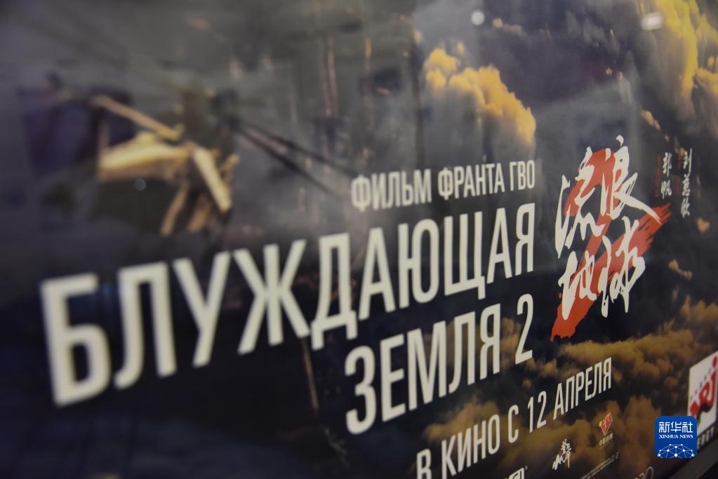 這是4月11日在俄羅斯首都莫斯科“莫斯科電影”旗下的宇宙電影院拍攝的《流浪地球2》電影宣傳海報。
