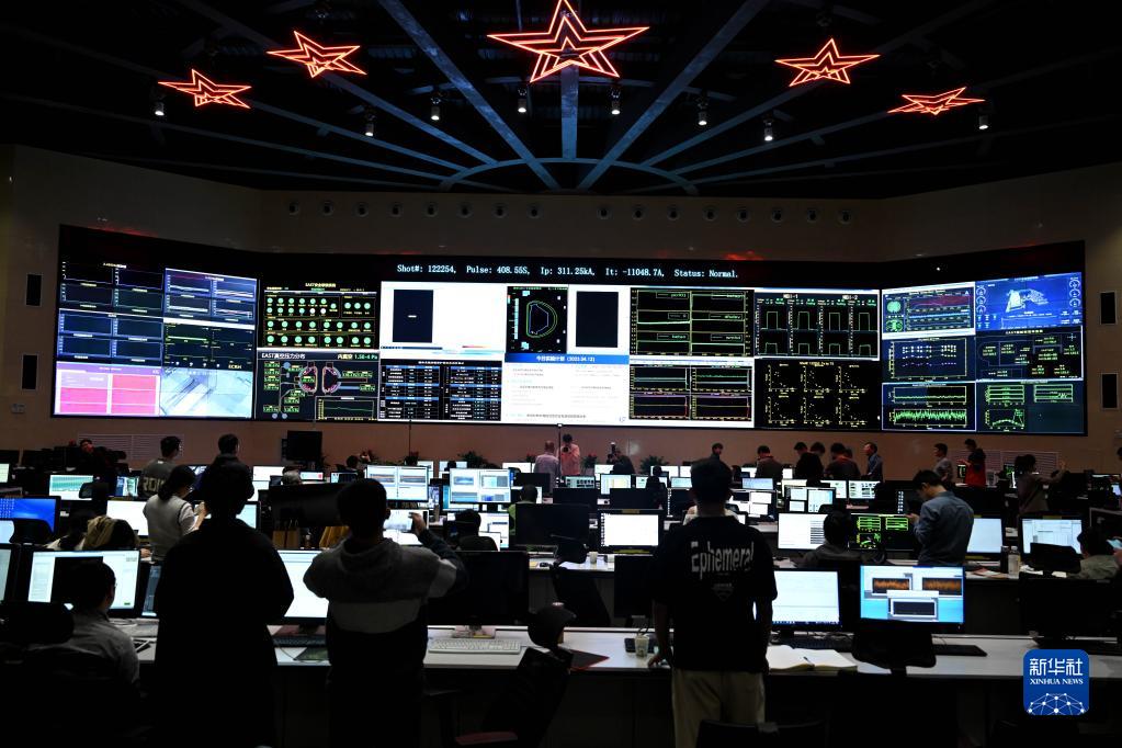 這是實(shí)驗成功后的全超導托卡馬克核聚變實(shí)驗裝置(EAST)控制大廳(4月12日攝)。