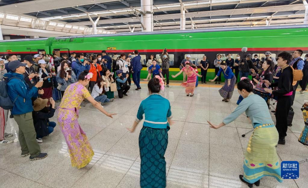當日,中老鐵路開(kāi)行國際旅客列車(chē),昆明至萬(wàn)象間可實(shí)現乘火車(chē)當日通達。