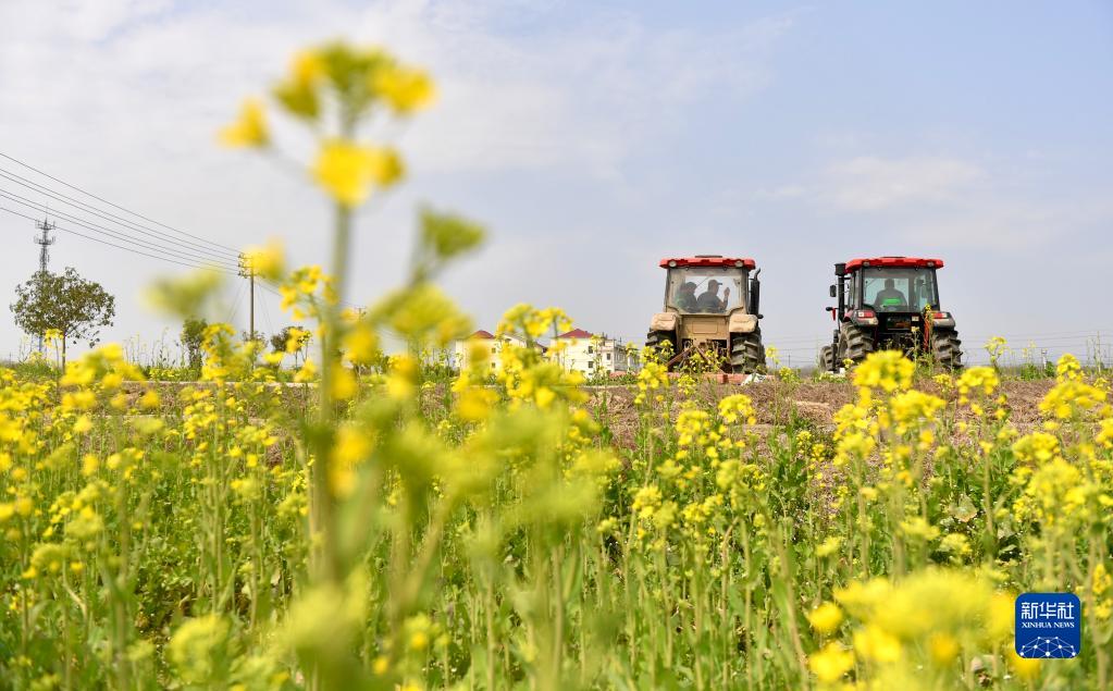 3月7日,黃從明和同事駕駛旋耕機在田間碎土。