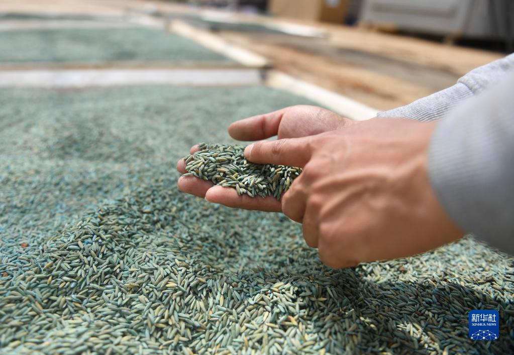 3月7日,黃從明在育秧車(chē)間內篩選良種。
