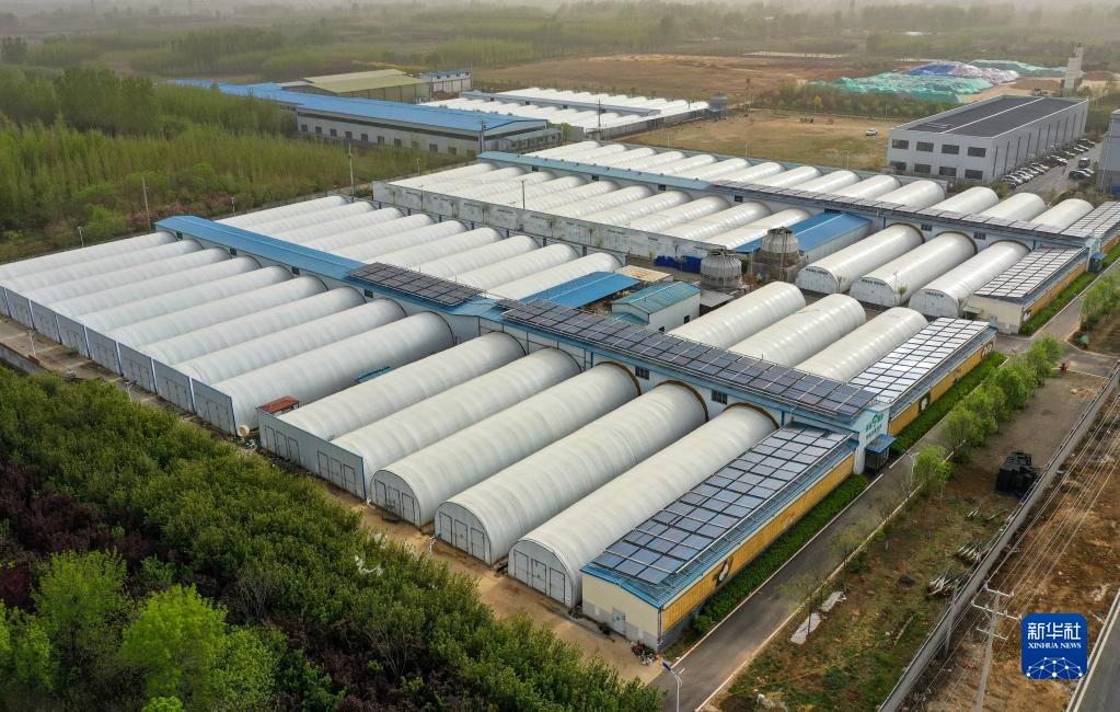 這是4月12日拍攝的山東省泰安市永樂(lè )食用菌科技產(chǎn)業(yè)園外景(無(wú)人機照片)。