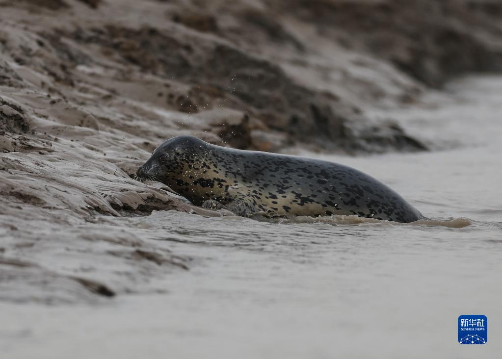 4月13日,西太平洋斑海豹在遼寧盤(pán)錦三道溝海域活動(dòng)。