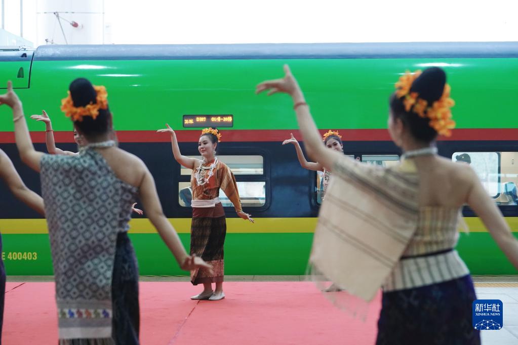 4月13日,中老鐵路從中國昆明南站、老撾萬(wàn)象站雙向對開(kāi)D887次和D888次國際旅客列車(chē),兩地乘火車(chē)可當日通達。列車(chē)使用動(dòng)力集中型“復興號”“瀾滄號”動(dòng)車(chē)組開(kāi)行,最高運行時(shí)速160公里。采取朝發(fā)夕至運行模式,每日雙向對開(kāi)各1列。全程經(jīng)停昆明南、普洱、西雙版納、磨憨、磨丁、瑯勃拉邦、萬(wàn)榮、萬(wàn)象8個(gè)車(chē)站,采取“兩地兩檢”通關(guān)模式。