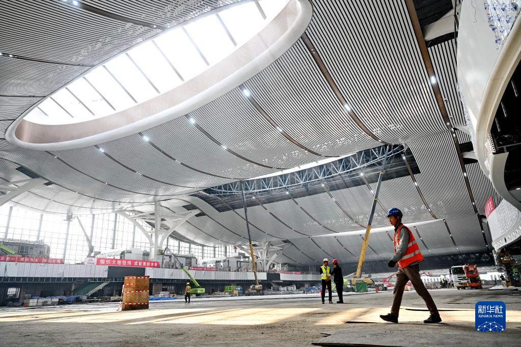 4月13日,中鐵建設集團有限公司施工人員在新建福廈鐵路廈門(mén)北站站房進(jìn)行內部裝飾。