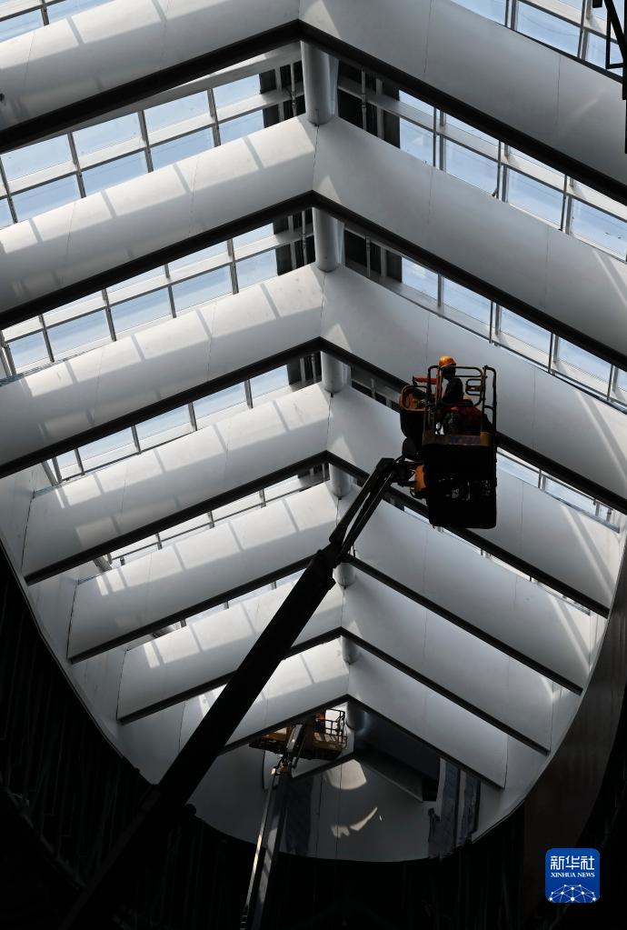 4月13日,中鐵建設集團有限公司施工人員在新建福廈鐵路廈門(mén)北站站房進(jìn)行智能天窗裝飾包邊作業(yè)。