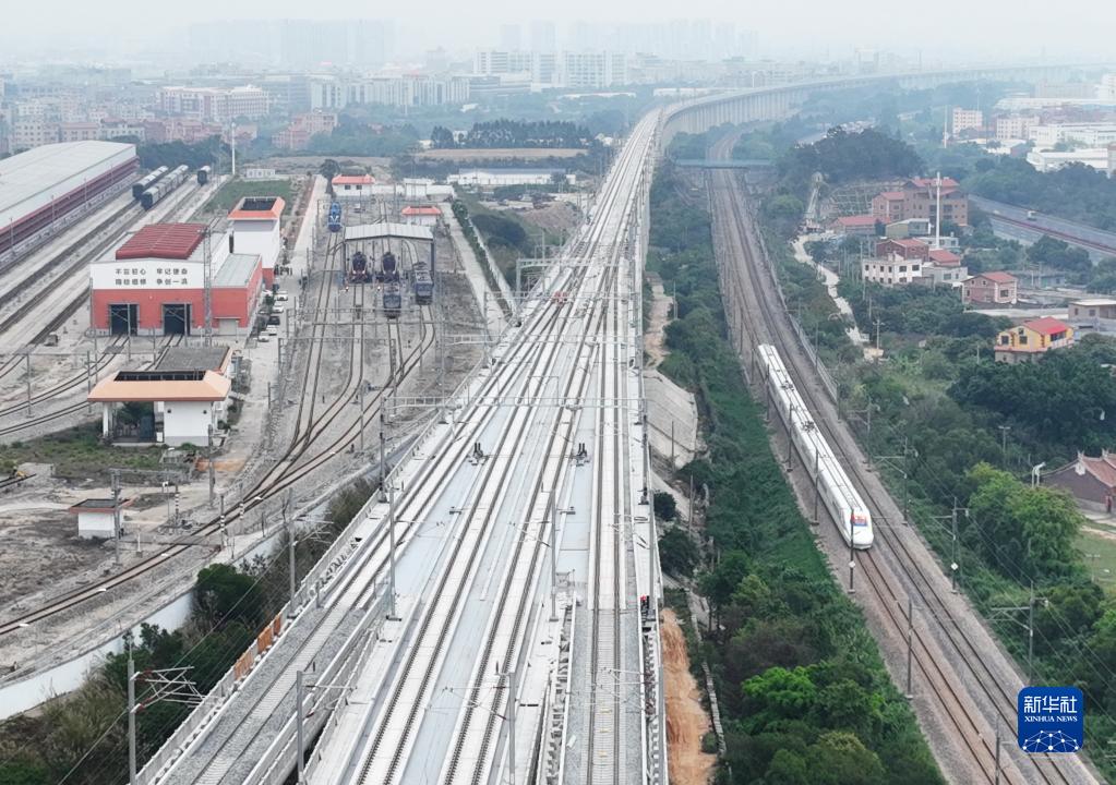 新建福廈鐵路廈門(mén)北進(jìn)島聯(lián)絡(luò )線(xiàn)與杭深線(xiàn)(右)(4月12日攝,無(wú)人機照片)。