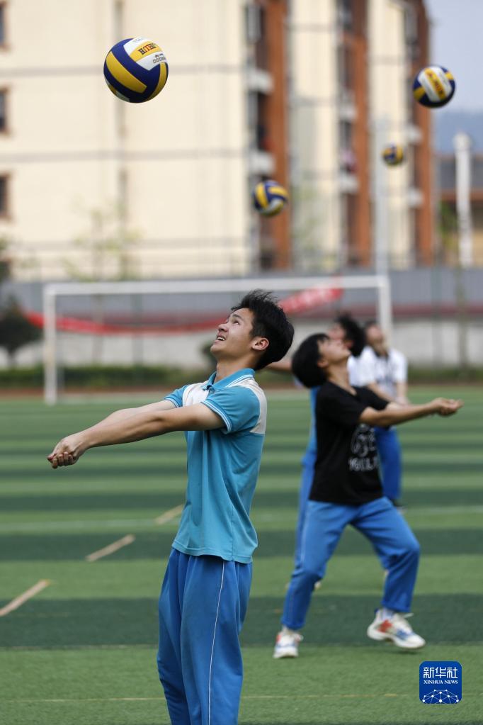 4月13日,在貴州省錦屏縣第四中學(xué),考生參加排球測試。