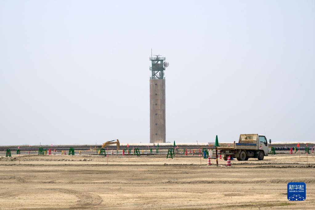 這是4月13日在日本大阪市人工島“夢(mèng)洲”拍攝的世博會(huì )工地。
