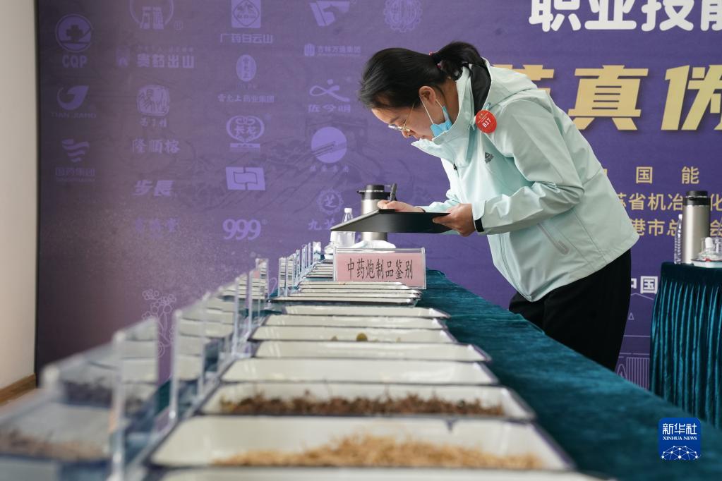 4月13日,在江蘇省連云港市舉行的第二屆全國中藥傳統名堂職業(yè)技能競賽決賽上,選手參加中藥炮制品鑒別項目的比賽。