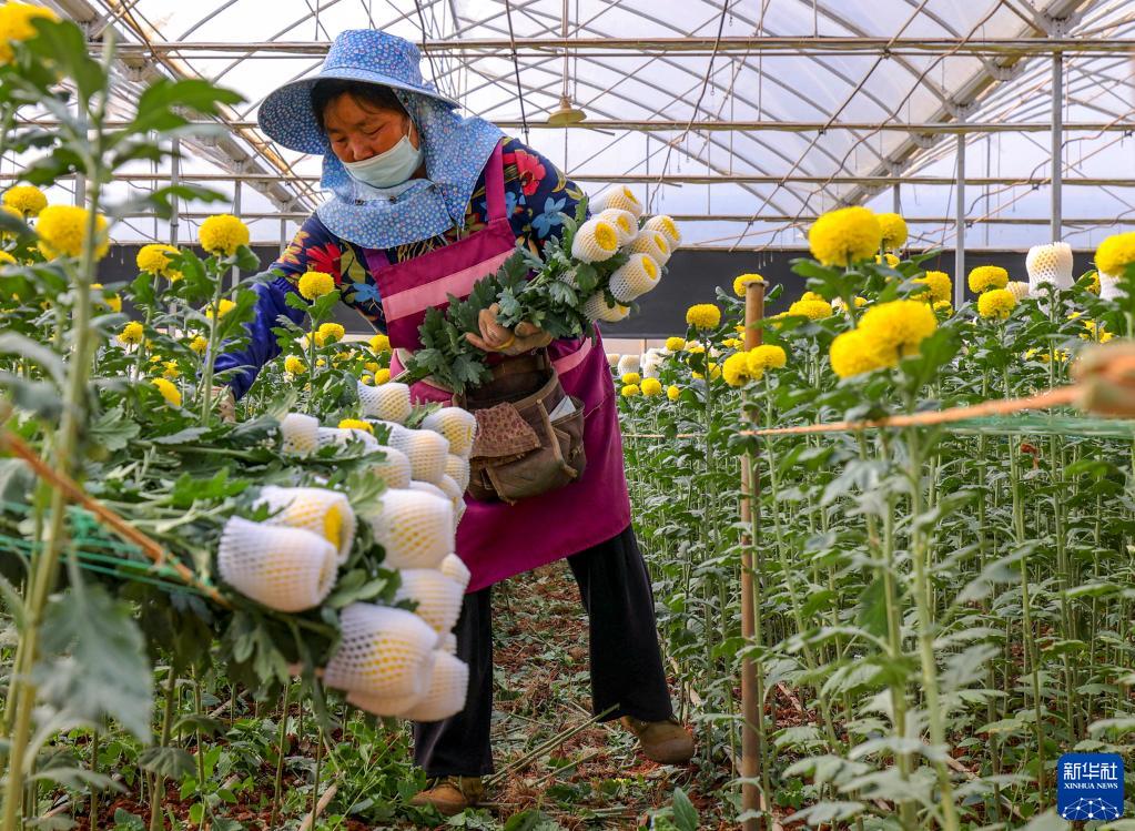 云南省開(kāi)遠市的花農采摘鮮花(3月22日攝)。