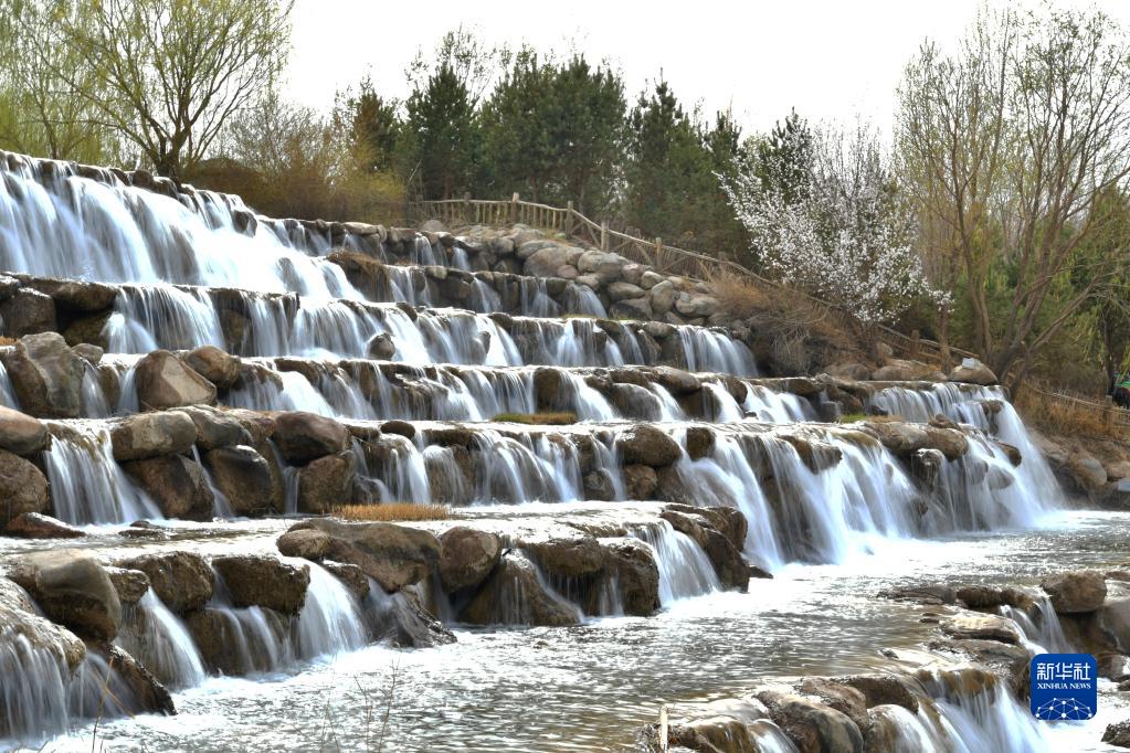 這是4月13日在張掖市蘆水灣生態(tài)景區內拍攝的瀑布景觀(guān)。