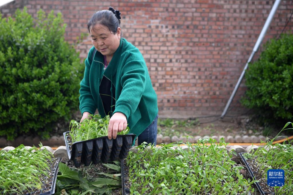 4月13日,在崇信縣錦屏鎮東莊村新豐園蔬菜生產(chǎn)基地,農民整理蔬菜秧苗準備裝車(chē)。