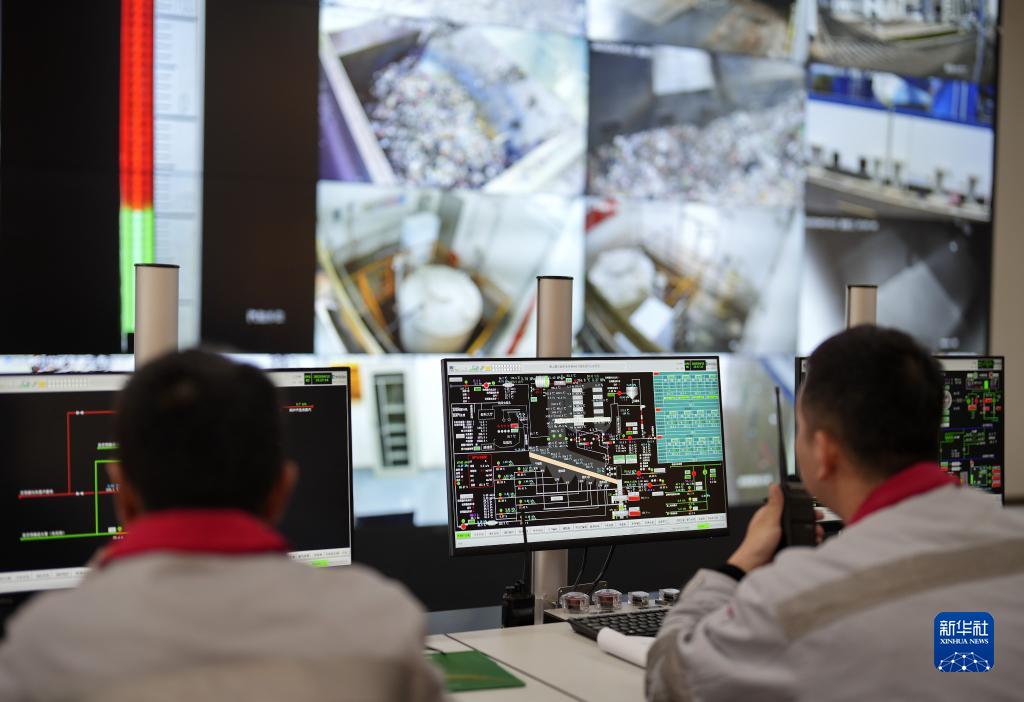 4月13日,工作人員在唐山冀東啟新水泥有限責任公司水泥窯協(xié)同處置綜合固廢及余熱發(fā)電循環(huán)產(chǎn)業(yè)項目指揮中心內監控設備運行情況。