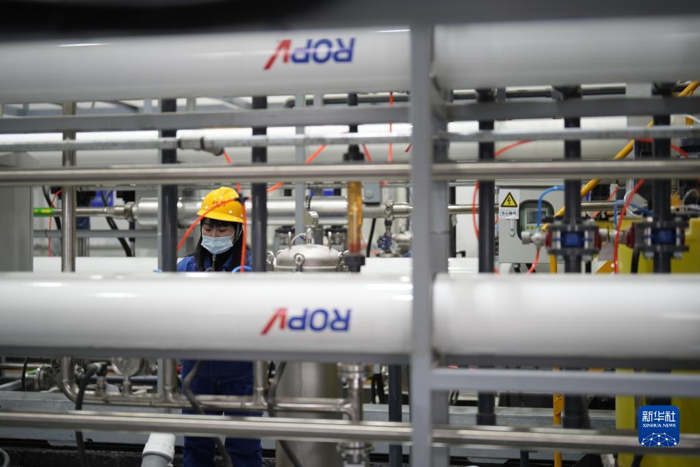4月13日,工作人員在唐山冀東啟新水泥有限責任公司滲液處理站內查看水凈化設備運行情況。該處理站可將生活垃圾產(chǎn)生的滲濾液經(jīng)處理后轉化為工業(yè)用水。