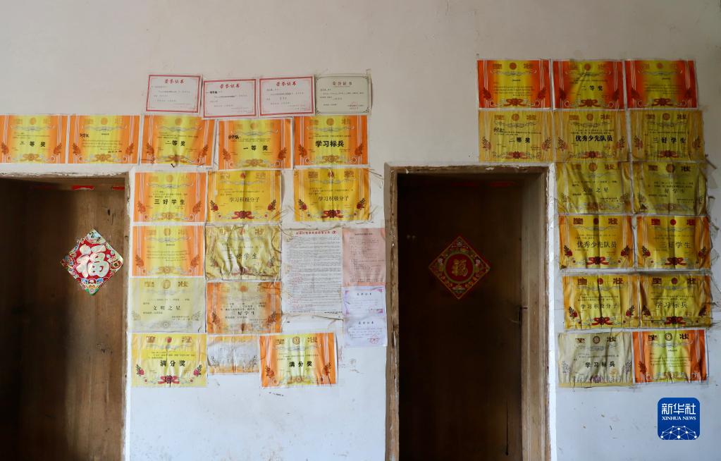 這是鐘華強獲得的部分榮譽(yù)證書(shū),張貼在家中的墻壁上(4月13日攝)。