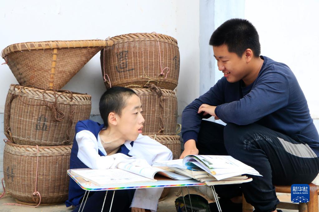 鐘華強患有先天性腦癱,雙腿無(wú)法正常行走。進(jìn)出教室、校園散步、上下樓梯、打水,上體育課……10年時(shí)間,朱金祥一直充當著(zhù)鐘華強的“腿腳”,背著(zhù)他一起長(cháng)大,成績(jì)優(yōu)異的鐘華強在學(xué)習上也常常幫助朱金祥。