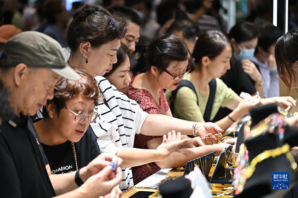 4月14日,觀(guān)眾在消博會(huì )上選購捷克水晶飾品。