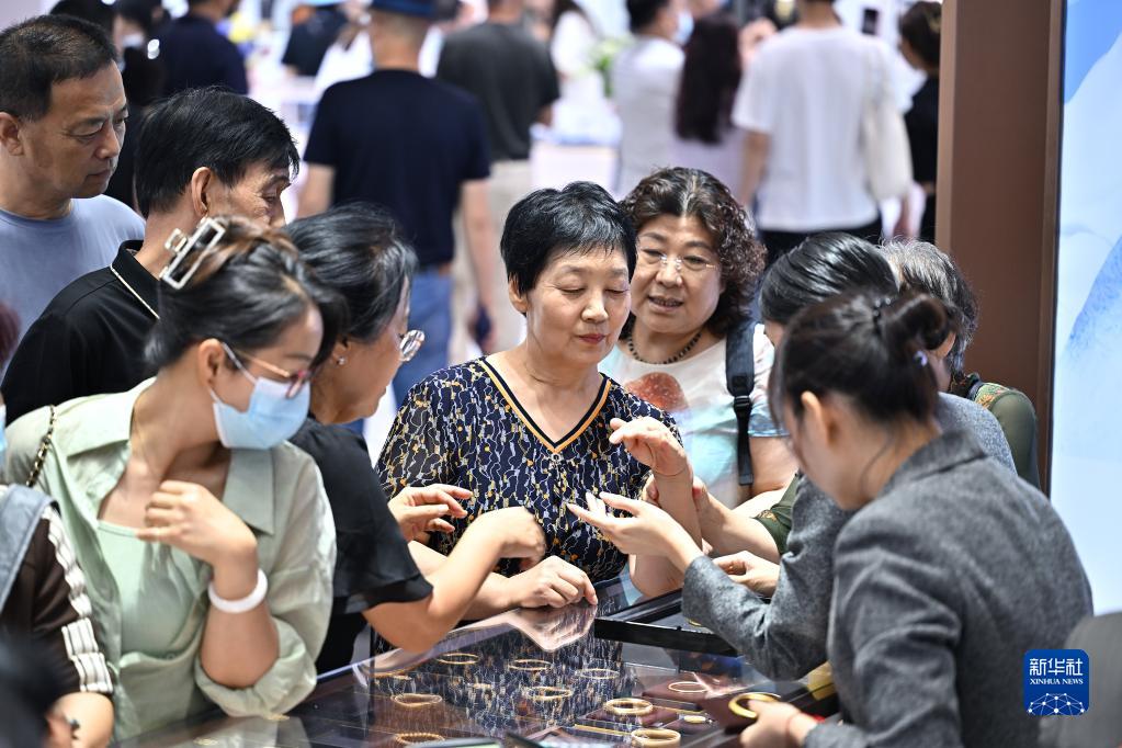 4月14日,觀(guān)眾在消博會(huì )上選購金首飾。