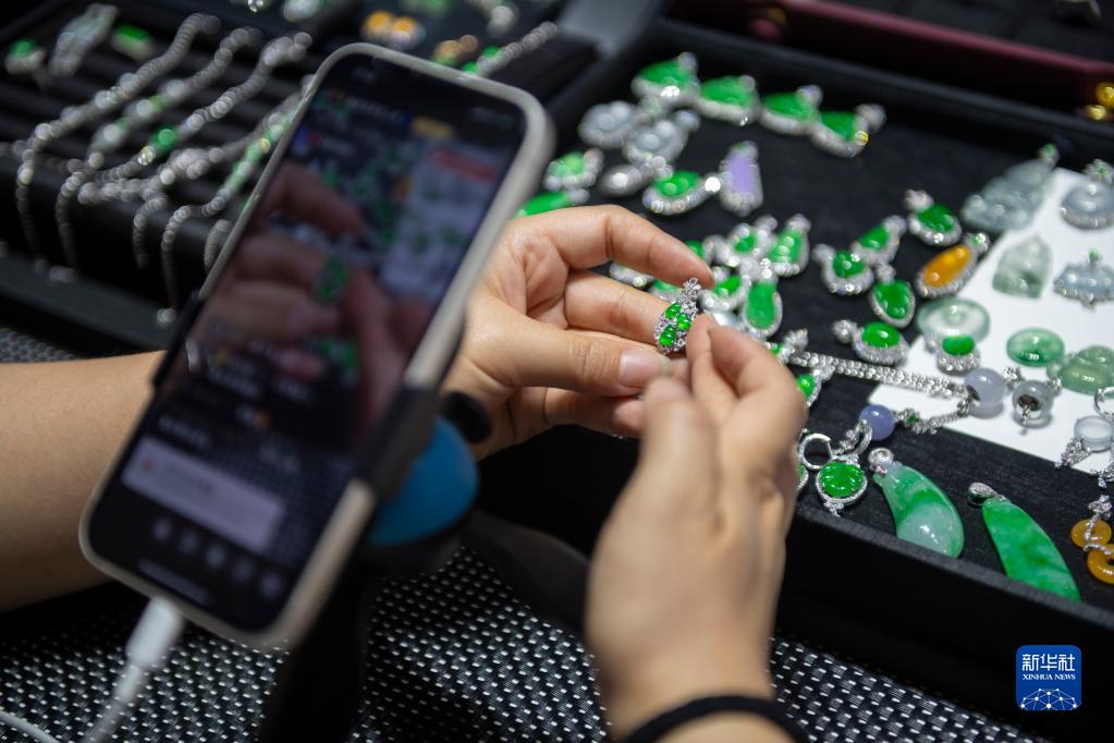 云南省德宏傣族景頗族自治州瑞麗市地處中緬邊境,是我國重要的珠寶玉石集散地之一。近日正值潑水節,到德宏州旅游的游客大幅增加,瑞麗市的珠寶玉石市場(chǎng)、直播基地一派繁忙景象,旅游熱帶動(dòng)珠寶銷(xiāo)售熱。