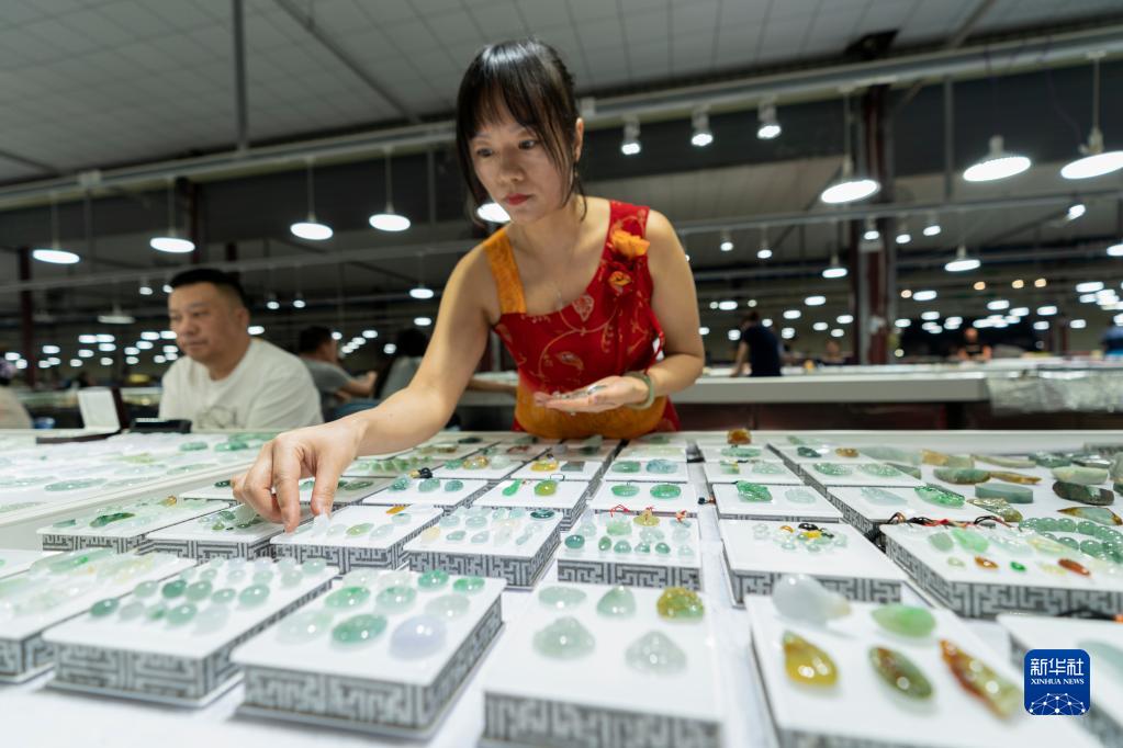 云南省德宏傣族景頗族自治州瑞麗市地處中緬邊境,是我國重要的珠寶玉石集散地之一。近日正值潑水節,到德宏州旅游的游客大幅增加,瑞麗市的珠寶玉石市場(chǎng)、直播基地一派繁忙景象,旅游熱帶動(dòng)珠寶銷(xiāo)售熱。