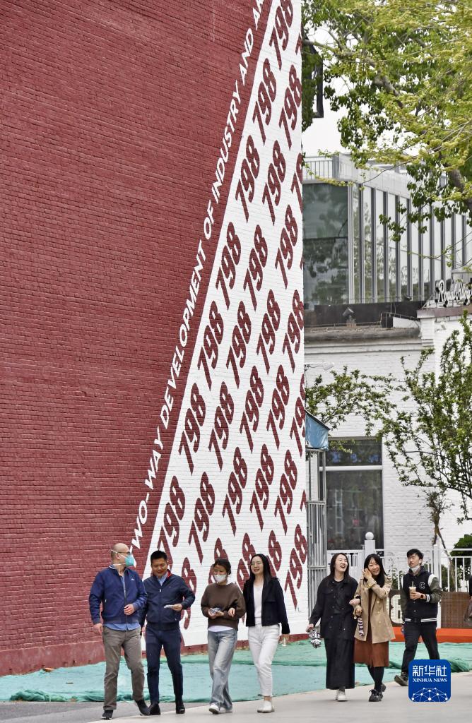 游人在老舊廠(chǎng)區改造的798藝術(shù)區內參觀(guān)(4月12日攝)。