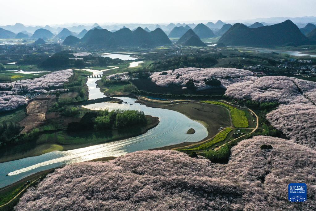 這是3月21日拍攝的貴州省貴安新區櫻花園(無(wú)人機照片)。