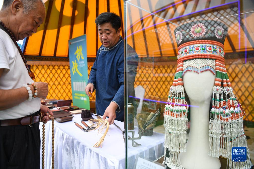 4月14日,在廣東佛山市文華公園,觀(guān)眾在了解蒙古族特色商品。