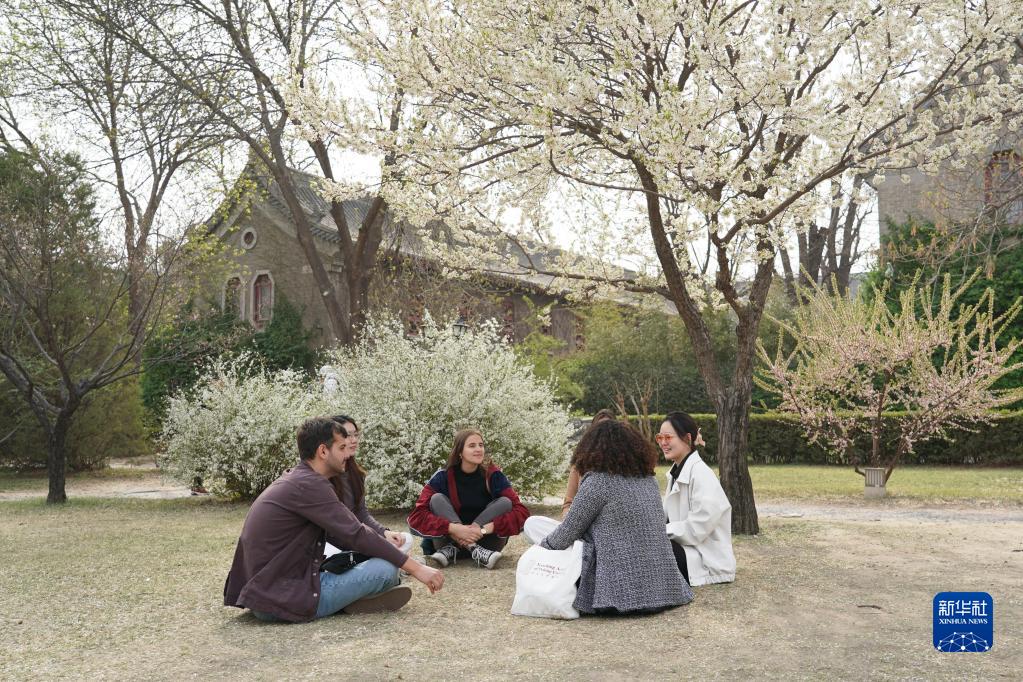3月31日,馬可德(左一)在北京大學(xué)與同學(xué)們交流。