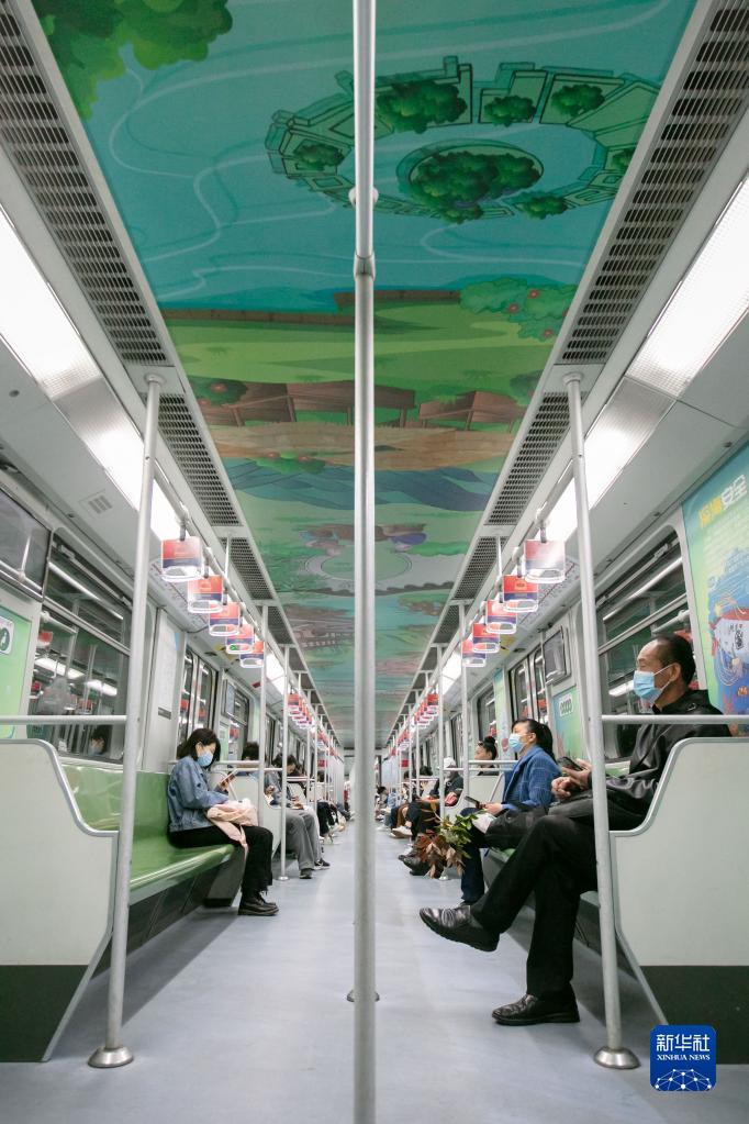 這是4月15日拍攝的上海地鐵“國安號”主題列車(chē)車(chē)廂內景,車(chē)廂內外以主題海報等形式宣傳國家安全知識。