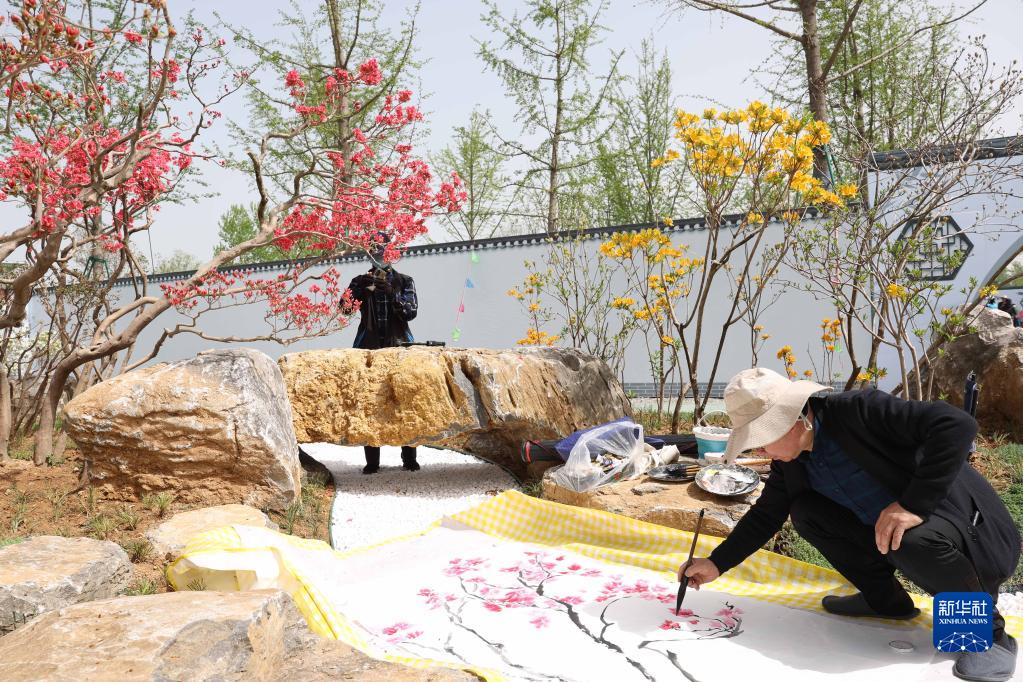 4月15日,畫(huà)家在盆景展展區寫(xiě)生創(chuàng )作。