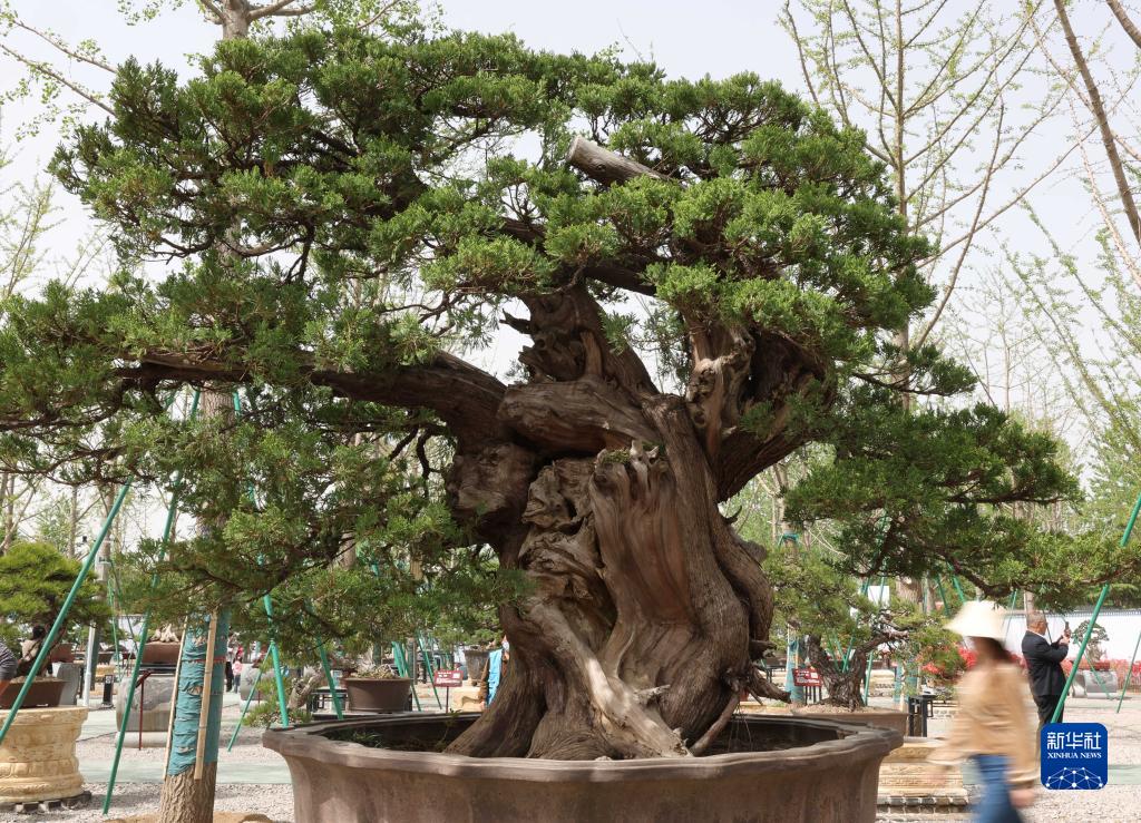 4月15日,觀(guān)眾從一個(gè)大型盆景旁走過(guò)。