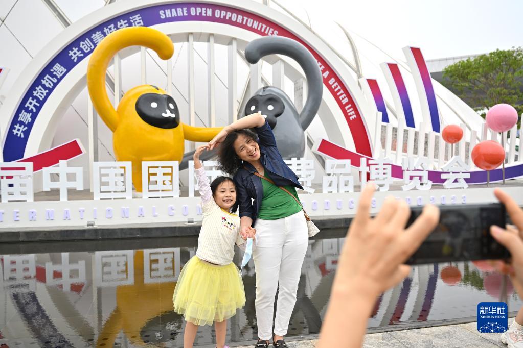 4月15日,觀(guān)眾在消博會(huì )場(chǎng)館外合影留念。