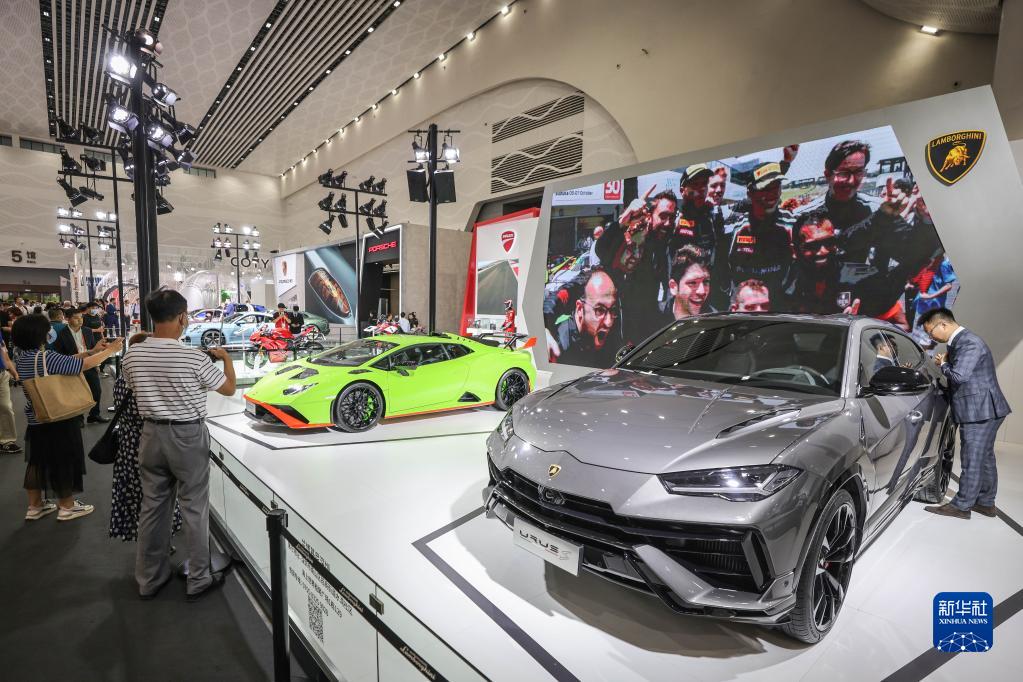 這是4月13日在消博會(huì )蘭博基尼展臺拍攝的汽車(chē)。