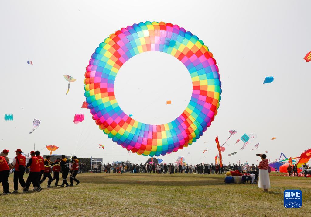 4月15日,參賽選手在濰坊國際風(fēng)箏會(huì )上放飛軟體風(fēng)箏。